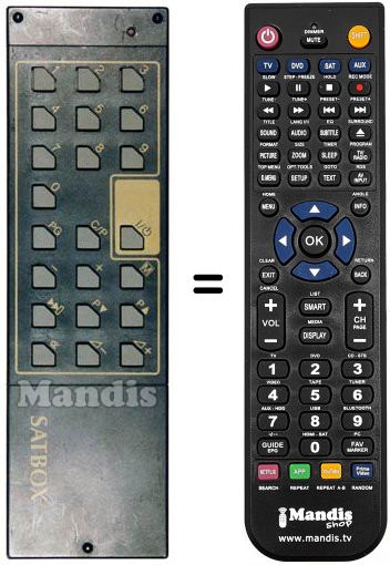 Télécommande qui remplace celle d'origine car elle possède les mêmes fonctions.
