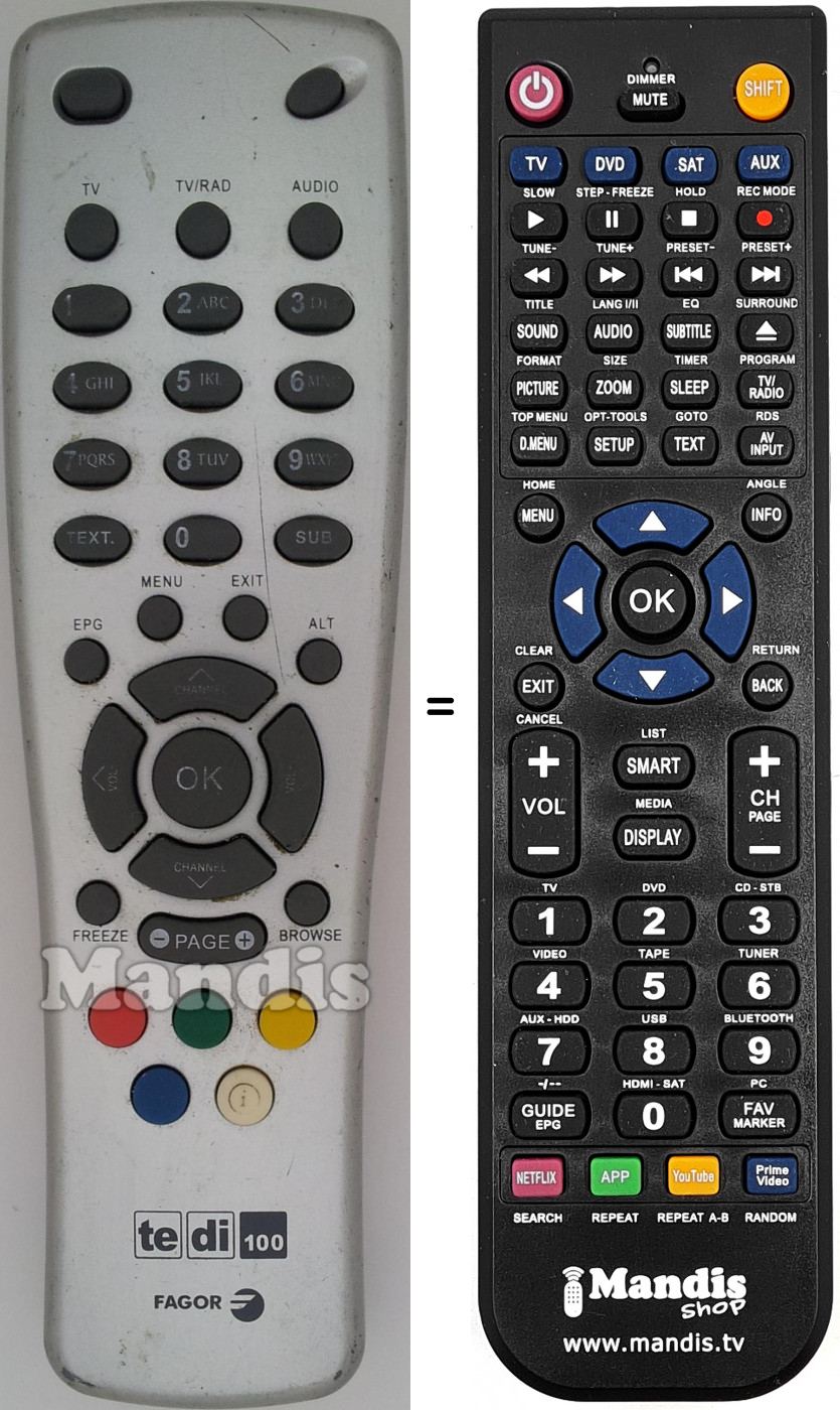 Télécommande qui remplace celle d'origine car elle possède les mêmes fonctions.