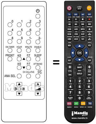 Télécommande qui remplace celle d'origine car elle possède les mêmes fonctions. Il ne s'agit pas d'une télécommande universelle mais d'une télécommande qui remplace celle d'origine. Vous recevrez la télécommande prête à fonctionner, vous n'aurez qu'à mettre les piles. Il n'est pas nécessaire de la programmer. Nous vous garantissons que la télécommande aura exactement les mêmes fonctions que celle d'origine.
