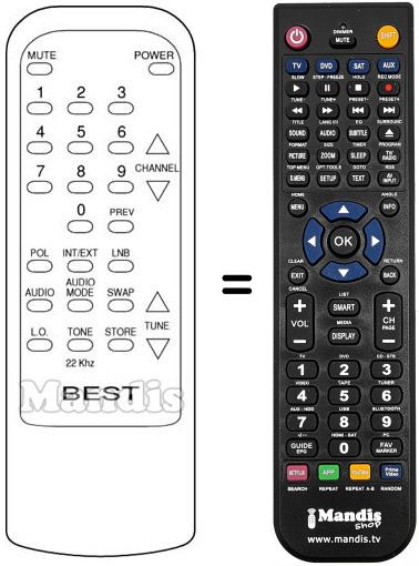 Télécommande qui remplace celle d'origine car elle possède les mêmes fonctions.