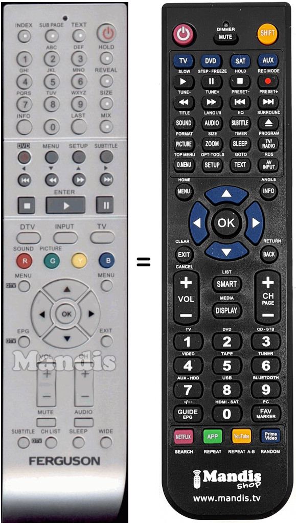 Télécommande qui remplace celle d'origine car elle possède les mêmes fonctions.