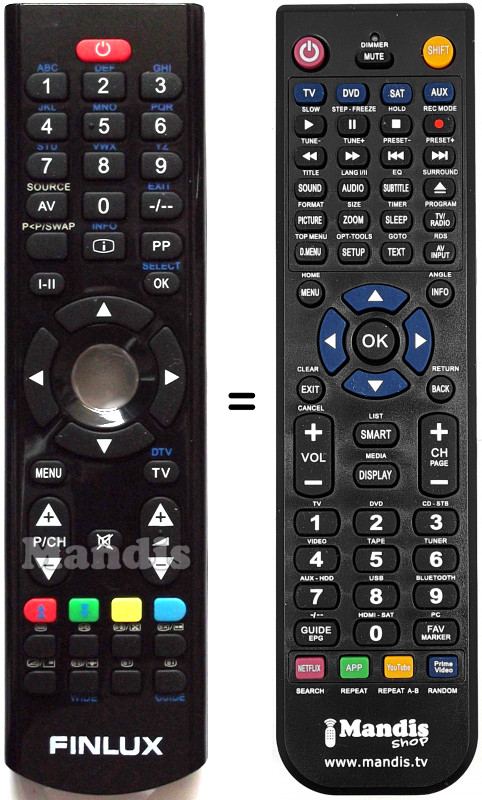Télécommande qui remplace celle d'origine car elle possède les mêmes fonctions.