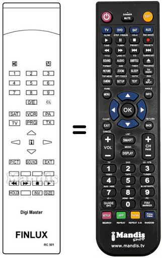 Télécommande qui remplace celle d'origine car elle possède les mêmes fonctions.