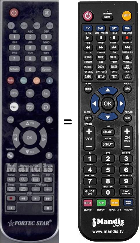 Télécommande qui remplace celle d'origine car elle possède les mêmes fonctions. Il ne s'agit pas d'une télécommande universelle mais d'une télécommande qui remplace celle d'origine. Vous recevrez la télécommande prête à fonctionner, vous n'aurez qu'à mettre les piles. Il n'est pas nécessaire de la programmer. Nous vous garantissons que la télécommande aura exactement les mêmes fonctions que celle d'origine.