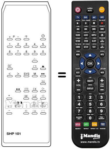 Télécommande qui remplace celle d'origine car elle possède les mêmes fonctions.