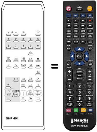 Télécommande qui remplace la télécommande d'origine SHP 401 car elle possède les mêmes fonctions.