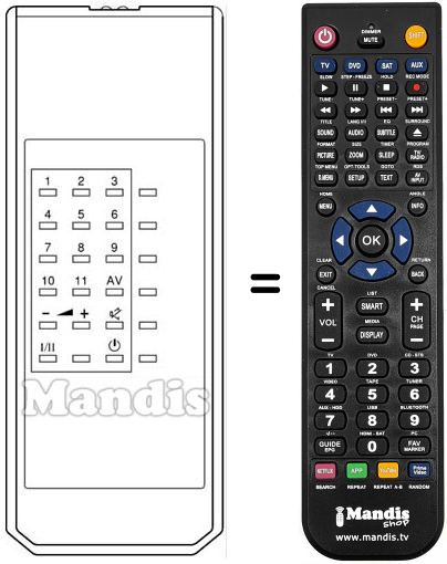 Télécommande qui remplace celle d'origine car elle possède les mêmes fonctions. Il ne s'agit pas d'une télécommande universelle mais d'une télécommande qui remplace celle d'origine. Vous recevrez la télécommande prête à fonctionner, vous n'aurez qu'à mettre les piles. Il n'est pas nécessaire de la programmer. Nous vous garantissons que la télécommande aura exactement les mêmes fonctions que celle d'origine.