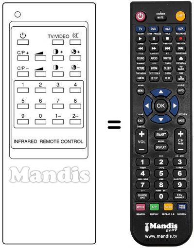 Télécommande qui remplace celle d'origine car elle possède les mêmes fonctions.