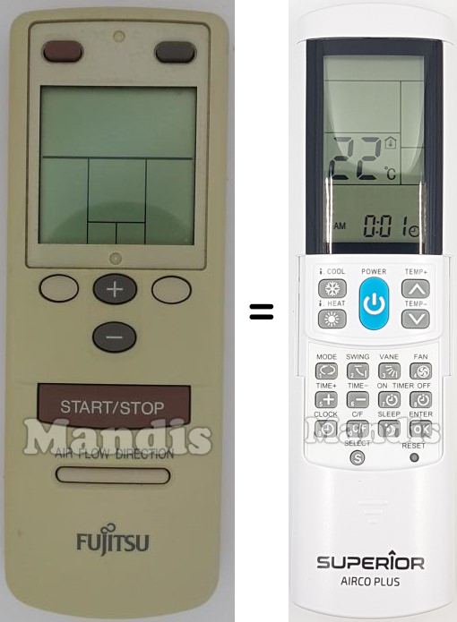 Accueil > Marques climatiseurs > Liste de télécommandes pour climatiseurs > Télécommande universelle FUJITSU Aircoplus (42530)