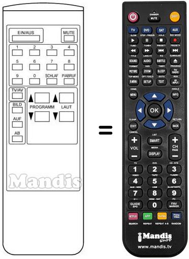 Télécommande qui remplace celle d'origine car elle possède les mêmes fonctions.
