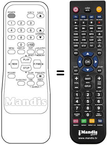 Télécommande qui remplace celle d'origine car elle possède les mêmes fonctions.