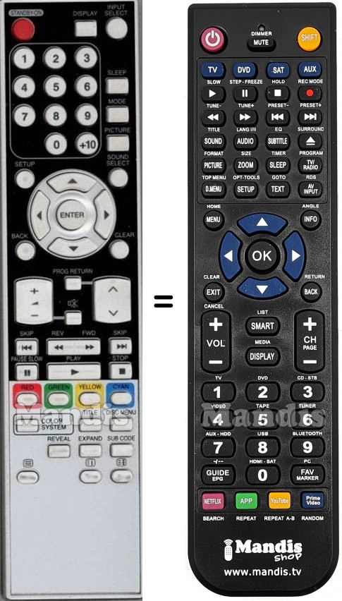 Télécommande qui remplace celle d'origine car elle possède les mêmes fonctions.
