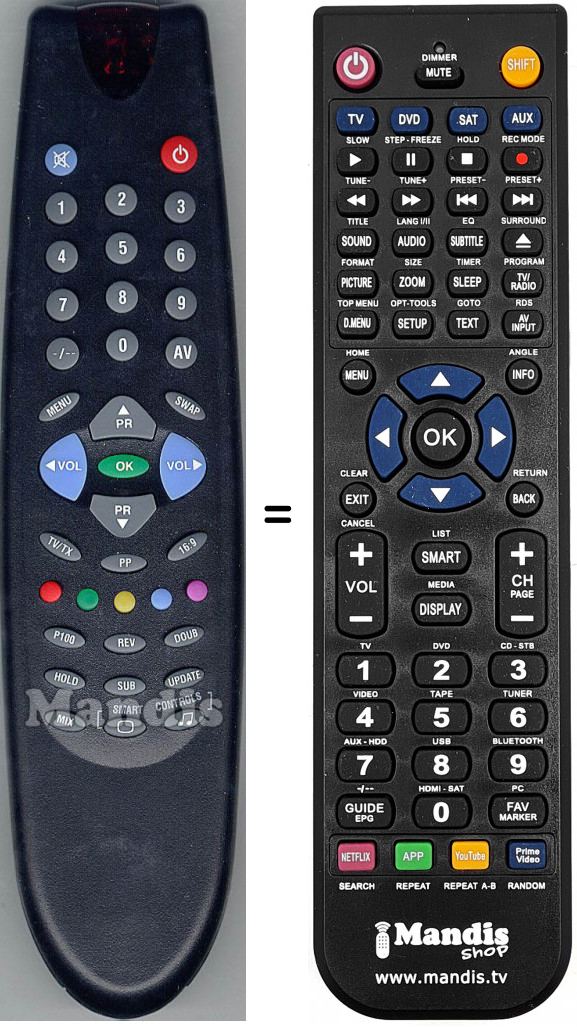 Télécommande qui remplace celle d'origine car elle possède les mêmes fonctions.