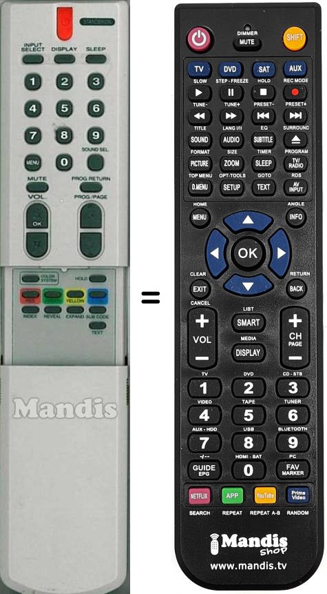 Télécommande qui remplace celle d'origine car elle possède les mêmes fonctions.