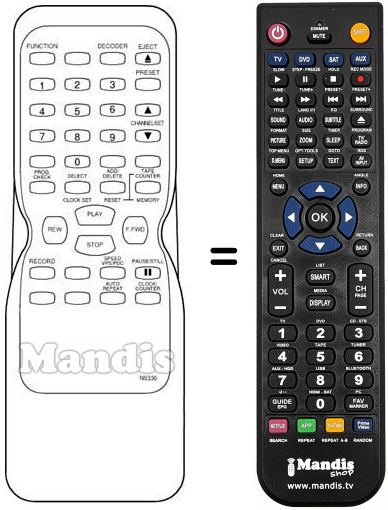 Télécommande qui remplace celle d'origine car elle possède les mêmes fonctions.