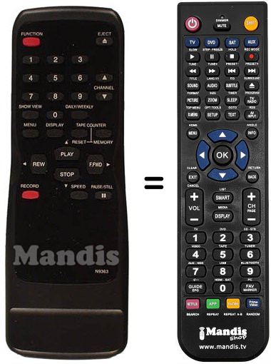 Télécommande qui remplace celle d'origine car elle possède les mêmes fonctions.