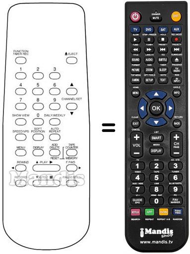Télécommande qui remplace celle d'origine car elle possède les mêmes fonctions.