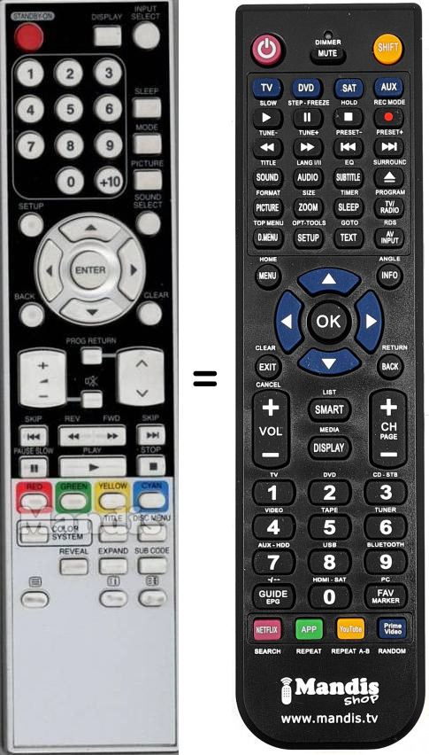 Télécommande qui remplace celle d'origine car elle possède les mêmes fonctions.