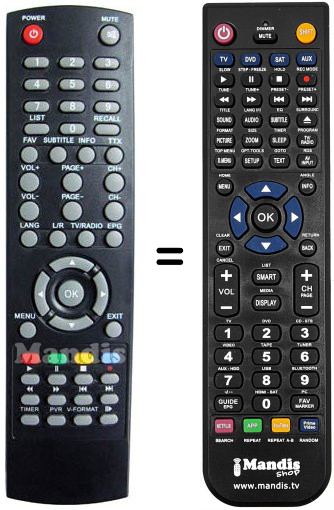 Télécommande qui remplace celle d'origine car elle possède les mêmes fonctions.