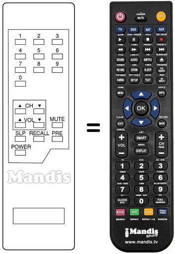 Télécommande qui remplace celle d'origine car elle possède les mêmes fonctions.