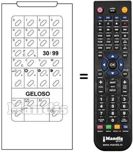 Télécommande qui remplace celle d'origine car elle possède les mêmes fonctions.