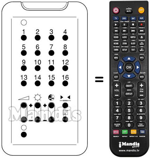 Télécommande qui remplace celle d'origine car elle possède les mêmes fonctions.