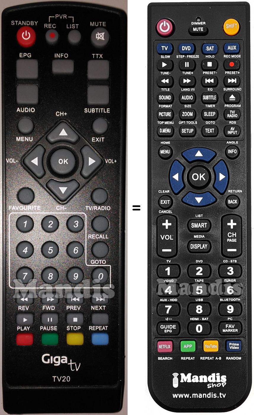 Cette télécommande remplace entièrement votre TV20 et offre toutes les fonctions de l'originale.