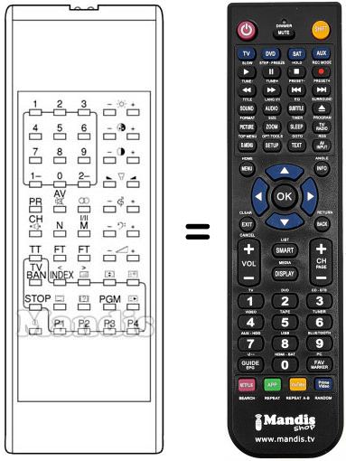 Télécommande qui remplace la télécommande d'origine TPG 704 car elle possède les mêmes fonctions.