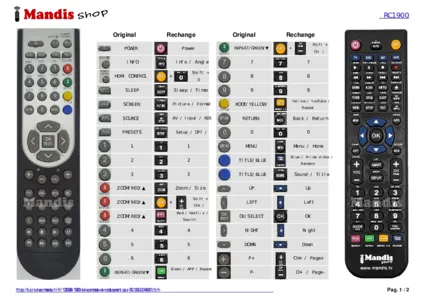 Un document est inclus pour vous aider à utiliser facilement la nouvelle télécommande, en indiquant la correspondance des boutons.