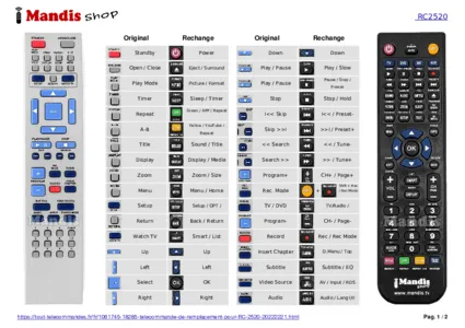Un document est inclus pour vous aider à utiliser facilement la nouvelle télécommande, en indiquant la correspondance des boutons.