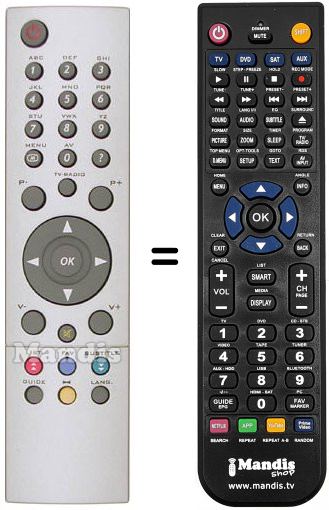 Télécommande qui remplace celle d'origine car elle possède les mêmes fonctions.