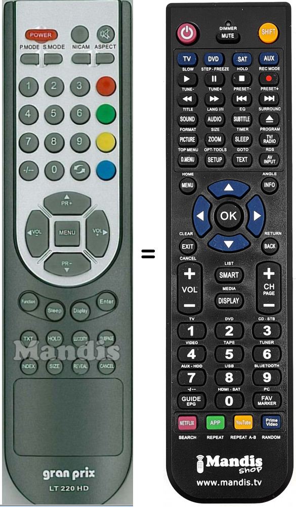 Télécommande qui remplace celle d'origine car elle possède les mêmes fonctions. Il ne s'agit pas d'une télécommande universelle mais d'une télécommande qui remplace celle d'origine. Vous recevrez la télécommande prête à fonctionner, vous n'aurez qu'à mettre les piles. Il n'est pas nécessaire de la programmer. Nous vous garantissons que la télécommande aura exactement les mêmes fonctions que celle d'origine.