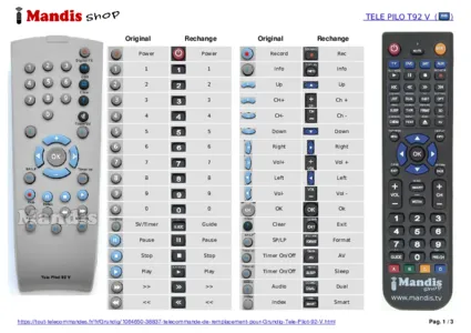 Cette télécommande remplace entièrement votre Tele Pilot 92 V et offre toutes les fonctions de l'originale.
