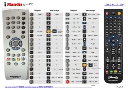 Cette télécommande remplace entièrement votre TELE PILOT 156C 2 et offre toutes les fonctions de l'originale.