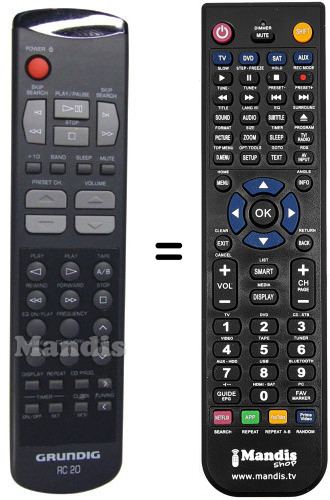 Télécommande qui remplace la télécommande d'origine RC20 (759510457700) car elle possède les mêmes fonctions.