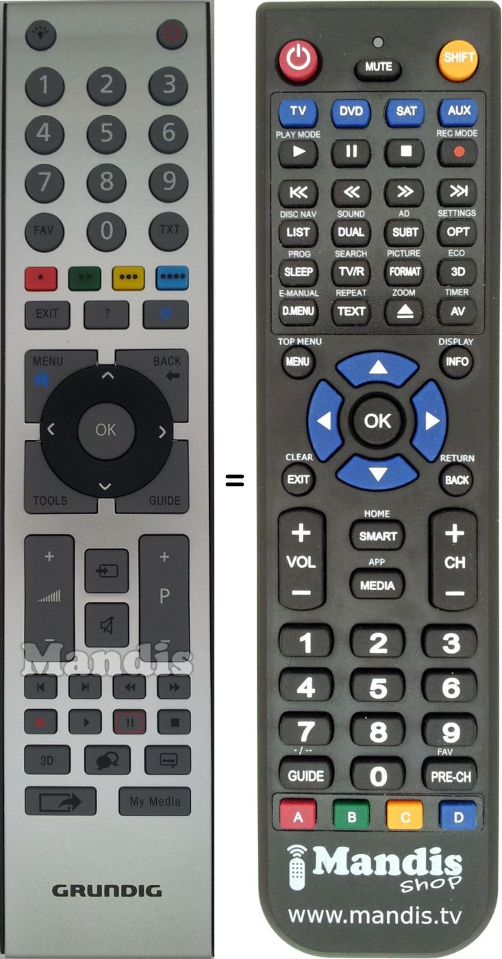 Télécommande équivalente Grundig 759551800700Télécommande équivalente Grundig 759551800700Disponible en stock27,50 € (TVA incluse)GrundigPour 49 VLE 8500B0, 42 VLE 840 BH, ROME 49 CLE 8560 BP, 55 VLE 8520 BL, 49 VLE 7520 BL, 55 VLE 840 BH, 49 VLE 8460 BP, ...Télécommande équivalente Grundig RP100Télécommande équivalente Grundig RP100Disponible en stock27,50 € (TVA incluse)GrundigPour RP 100Télécommande équivalente RC1101Télécommande équivalente RC1101Disponible en stock27,50 € (TVA incluse)GrundigPour 10071321, 30058733, FTA320PVR, RC1101, 10047219, 30042197, DTVR160-FN1020, DVRT810, TS1050TDD250Télécommande équivalente Grundig TS5R6-NETFLIXTélécommande équivalente Grundig TS5R6-NETFLIXDisponible en stock27,50 € (TVA incluse)GrundigPour SUPER COLOR C 3302, 55 VLX 8582 SP, 55 VLE 8560 WPTélécommande équivalente Grundig 759551787500Télécommande équivalente Grundig 759551787500Disponible en stock27,50 € (TVA incluse)GrundigPour FINE ARTS 65 FLX 9492 SP, FINE ARTS 55 FLX 9492 SPTélécommande équivalente Grundig 759551787500Télécommande équivalente Grundig 759551787500Disponible en stock27,50 € (TVA incluse)GrundigPour FINE ARTS 65 FLX 9492 SP, FINE ARTS 55 FLX 9492 SPTélécommande équivalente RC1165 (RC1180)Télécommande équivalente RC1165 (RC1180)Disponible en stock27,50 € (TVA incluse)GrundigPour PS19DVD904 10064189, PS22DVD906, PS22DVD906 10064284, PS22HD906 10064285, CE19LD86DVB, 37 XV 500 P, 10058895, 22LCDDVDVD9, ...Télécommande équivalente Grundig RP 100Télécommande équivalente Grundig RP 100Disponible en stock27,50 € (TVA incluse)GrundigPour RP 100Télécommande d'origine GRUNDIG TP5-BisTélécommande d'origine GRUNDIG TP5-BisDisponible en stock21,50 € (TVA incluse)GrundigPour Téléviseurs FINEARTS553DWEBSILBER (553DWEBSILBER), FINEARTS553DWEBSILBER, GBJ7155, 553 DWEB SILVER, ...Télécommande d'origine GRUNDIG 076N0GE010Télécommande d'origine GRUNDIG 076N0GE010Disponible en stock32,50 € (TVA incluse)GrundigTélécommande d'origine GRUNDIG TS5 NETFLIX (759551840000)Télécommande d'origine GRUNDIG TS5 NETFLIX (759551840000)Disponible en stock40,55 € (TVA incluse)GrundigPour Téléviseurs FINE ARTS 55 FLX 9492 SP, FINE ARTS 65 FLX 9492 SPTélécommande d'origine GRUNDIG TP7 Netflix (759551787500)Télécommande d'origine GRUNDIG TP7 Netflix (759551787500)Disponible en stock40,55 € (TVA incluse)GrundigPour Téléviseurs FINE ARTS 55 FLX 9492 SP, FINE ARTS 65 FLX 9492 SPTélécommande d'origine GRUNDIG 313922888851 (TP 150 C)Télécommande d'origine GRUNDIG 313922888851 (TP 150 C)Disponible en stock21,50 € (TVA incluse)GrundigPour Téléviseurs TP 150 C, LEEMAXX55FLAT (MF 55-9201DOLBYVNMAQUA SILBER), ELEGANCE63 (ST63-300DOLBYVNXPROCONSIL), ...Télécommande d'origine GRUNDIG RC1165Télécommande d'origine GRUNDIG RC1165Disponible en stock29,50 € (TVA incluse)GrundigTélécommande d'origine GRUNDIG 720117142500Télécommande d'origine GRUNDIG 720117142500Disponible en stock13,49 € (TVA incluse)GrundigTélécommande d'origine GRUNDIG RC5D (720117140200)Télécommande d'origine GRUNDIG RC5D (720117140200)Disponible en stock15,89 € (TVA incluse)GrundigTélécommande d'origine GRUNDIG 720117138000Télécommande d'origine GRUNDIG 720117138000Disponible en stock15,89 € (TVA incluse)GrundigTélécommande d'origine GRUNDIG DR4500DD (759551120100)Télécommande d'origine GRUNDIG DR4500DD (759551120100)Disponible en stock38,97 € (TVA incluse)GrundigPour Chaîne Hi-Fi CINEM0 (DR4500DD CHROME)Télécommande d'origine GRUNDIG 759551110100Télécommande d'origine GRUNDIG 759551110100Disponible en stock20,33 € (TVA incluse)GrundigTélécommande d'origine GRUNDIG RC 45 (759551059300)Télécommande d'origine GRUNDIG RC 45 (759551059300)Disponible en stock23,92 € (TVA incluse)Grundig