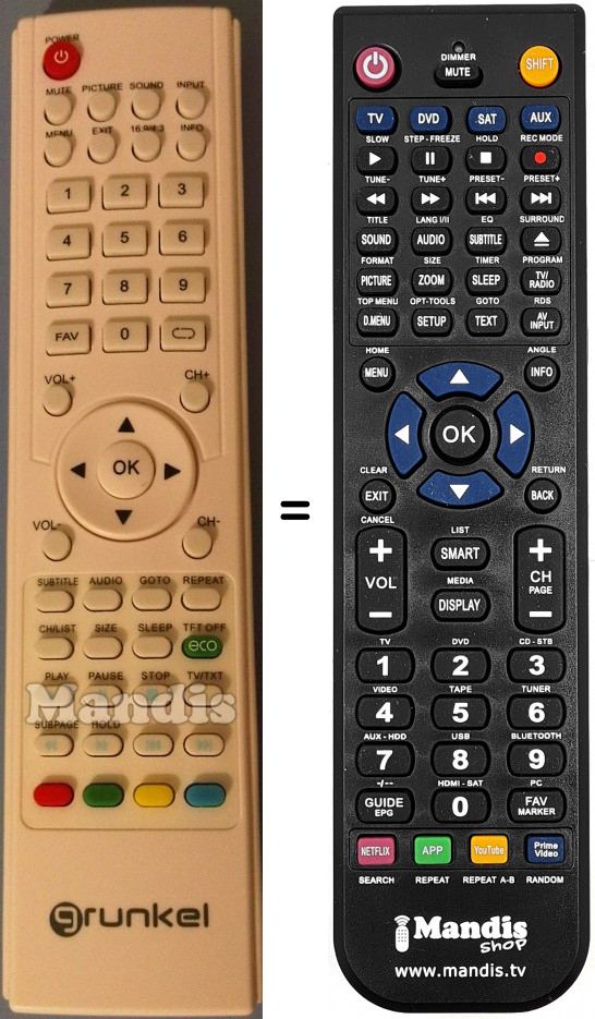 Télécommande qui remplace celle d'origine car elle possède les mêmes fonctions.