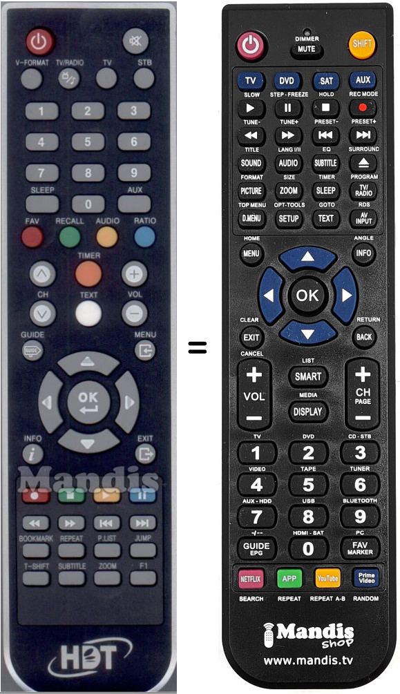 Télécommande qui remplace celle d'origine car elle possède les mêmes fonctions. Il ne s'agit pas d'une télécommande universelle mais d'une télécommande qui remplace celle d'origine. Vous recevrez la télécommande prête à fonctionner, vous n'aurez qu'à mettre les piles. Il n'est pas nécessaire de la programmer. Nous vous garantissons que la télécommande aura exactement les mêmes fonctions que celle d'origine.