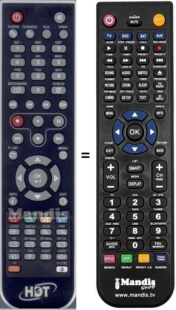 Télécommande qui remplace celle d'origine car elle possède les mêmes fonctions.