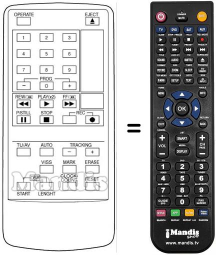 Télécommande qui remplace celle d'origine car elle possède les mêmes fonctions.