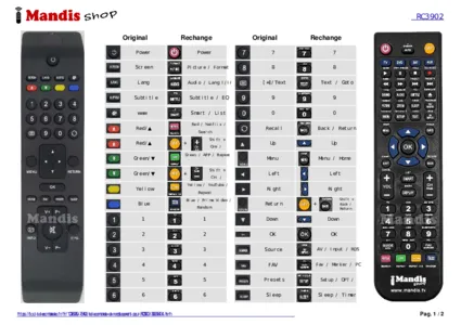 Cette télécommande remplace entièrement votre RC3902 et offre toutes les fonctions de l'originale.