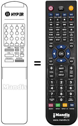 Télécommande qui remplace celle d'origine car elle possède les mêmes fonctions.