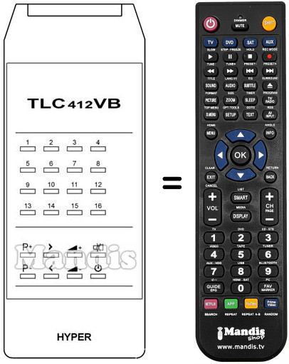 Télécommande qui remplace celle d'origine car elle possède les mêmes fonctions.