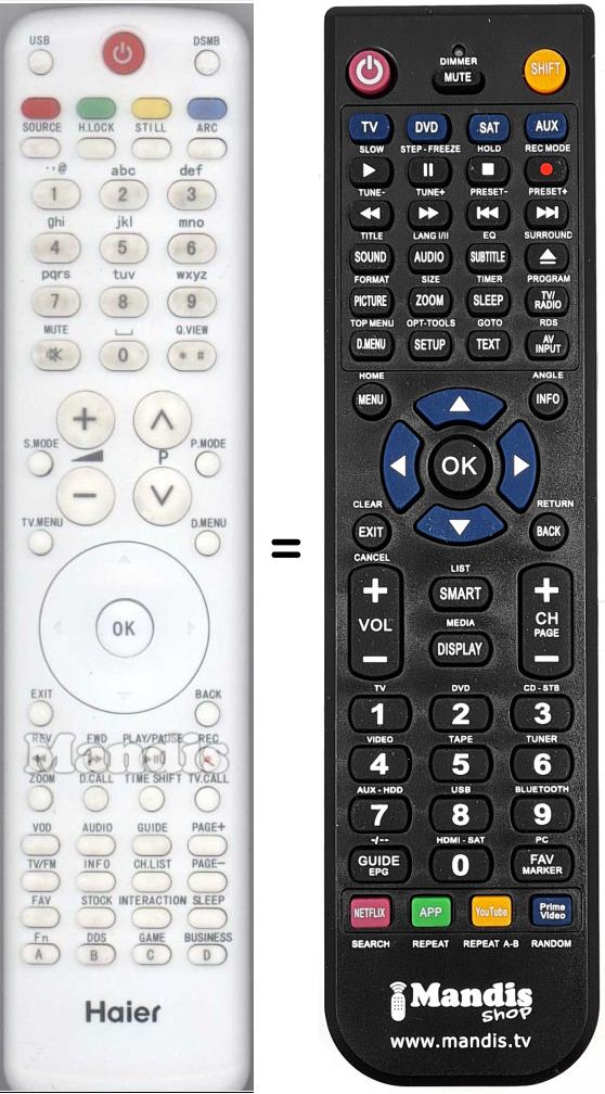 Télécommande qui remplace celle d'origine car elle possède les mêmes fonctions.