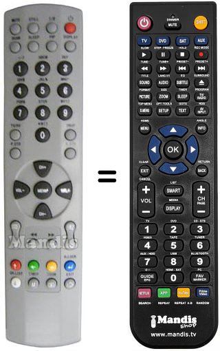 Télécommande qui remplace celle d'origine car elle possède les mêmes fonctions.