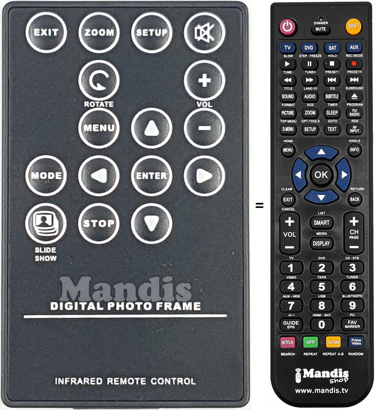 Vous pouvez également utiliser cette télécommande pour d'autres appareils, mais elle doit être programmée pour ces appareils avant de l'envoyer. Après l'envoi, le client aurait besoin d'un programmateur et d'un logiciel spéciaux pour pouvoir reprogrammer la télécommande.