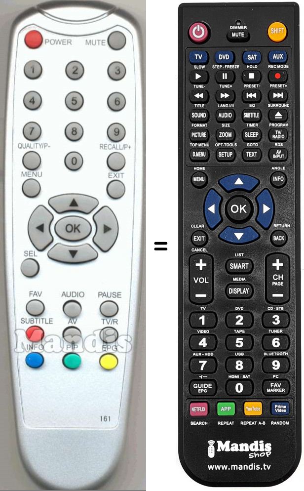 Télécommande qui remplace celle d'origine car elle possède les mêmes fonctions.