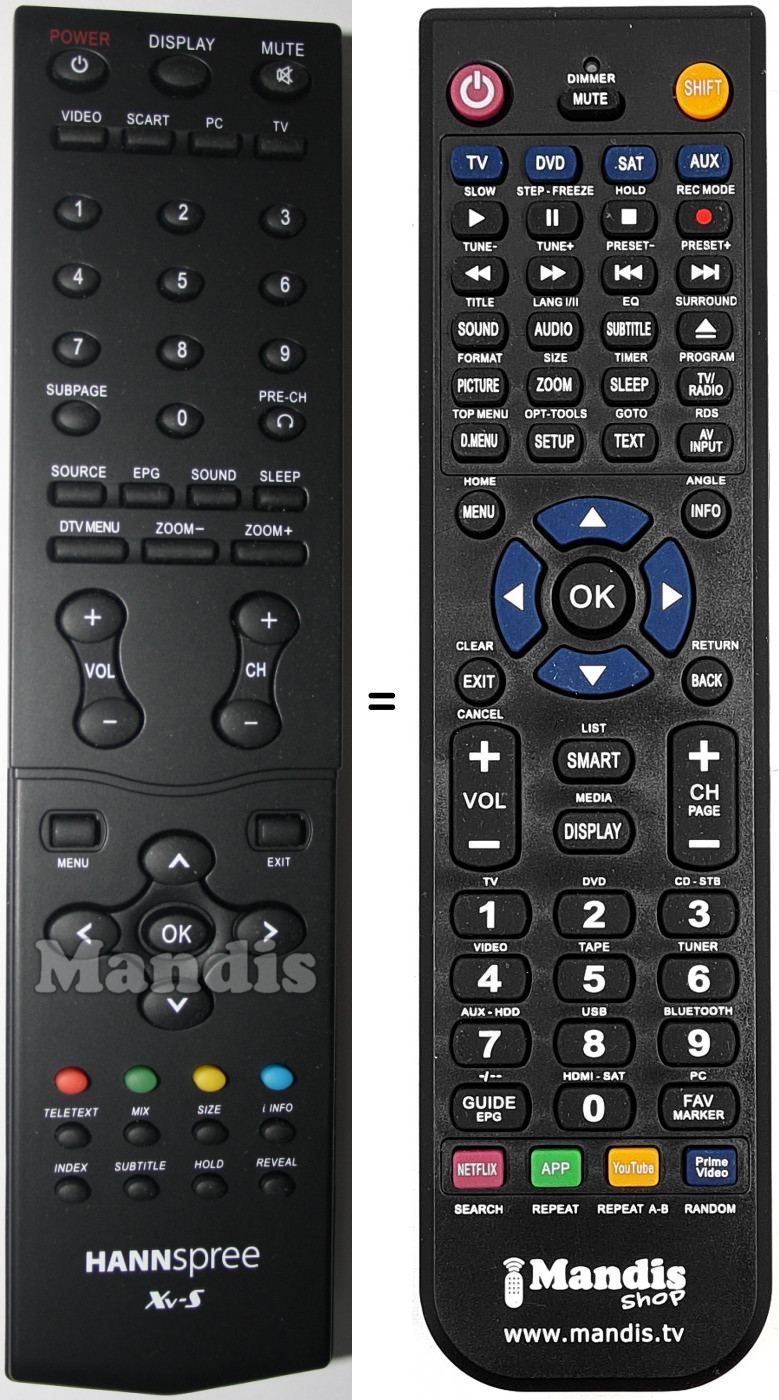Télécommande qui remplace la télécommande d'origine Xv-S (98TRABD-5NT-HSF) car elle possède les mêmes fonctions.