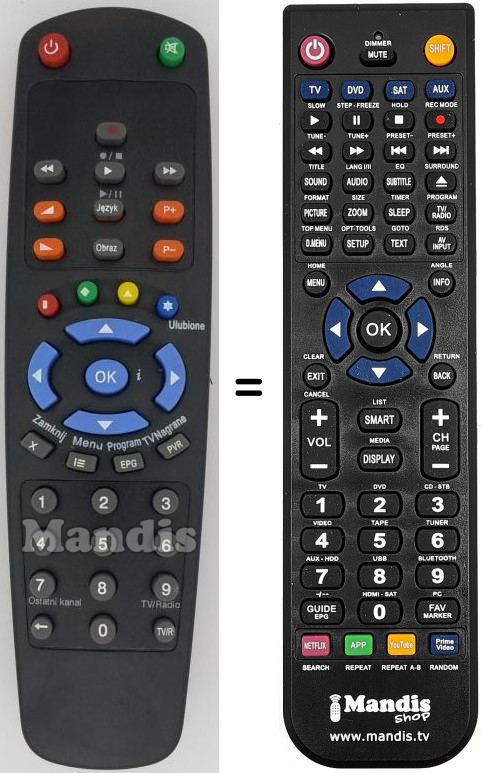 Télécommande qui remplace celle d'origine car elle possède les mêmes fonctions.