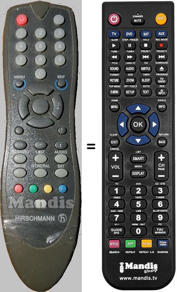 Télécommande qui remplace celle d'origine car elle possède les mêmes fonctions.
